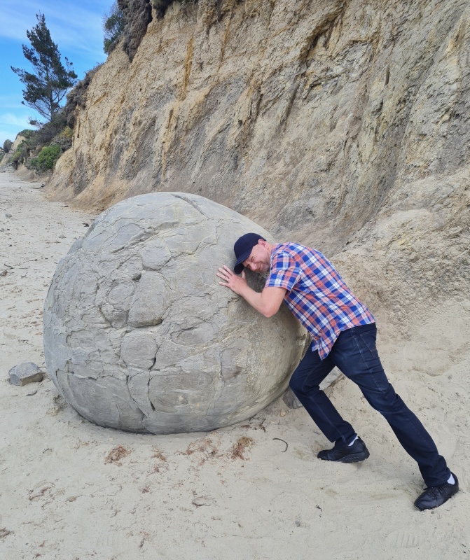 Well, a bit of a messy report. But hopefully, the pictures fill in the lack of details. I really like the photo taken of Andy trying to push a Moeraki Boulder. It reminds me of an evangelist trying to encourage the church in evangelism (maybe the broken bit of rock at the front represents the elders? – that’s a joke, so please don’t take it seriously, I love the church, and I love the elders of the church!). Yet, it really does feel like that sometimes: impossible. Yet, Jesus said about salvation: what’s impossible for man, is possible for God. I’m praying that would be true about evangelism too. The harvest is ripe, and the labourers are few, pray to the God of the harvest for more labourers, and then endeavour to be part of the answer to that prayer! May God bless you in your feeble efforts, as he blesses our feeble efforts. All glory to him alone!