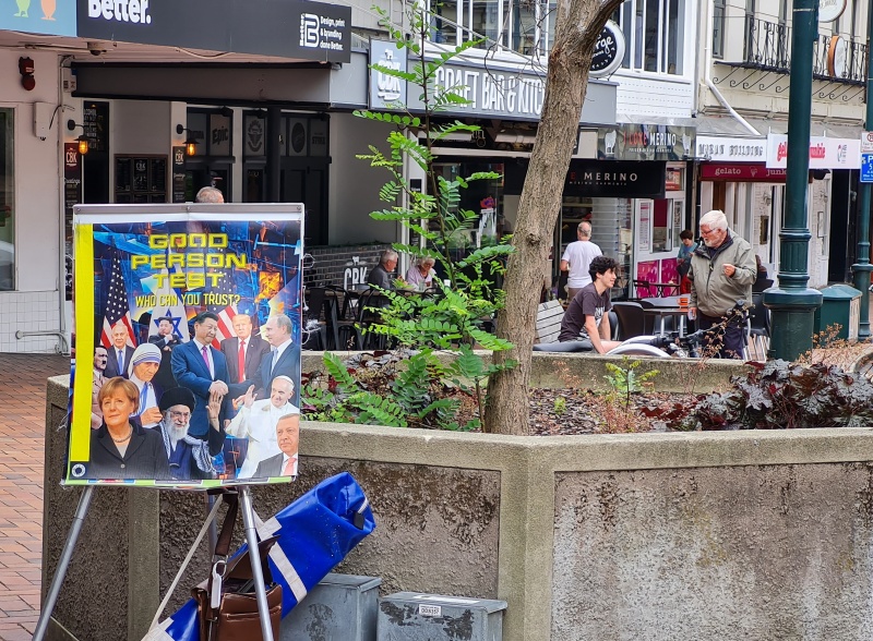 It had been a tiring conversation, so I spent some time handing out tracts. In spite of all the people due to the Busking Festival, there wasn’t much interest. I ended up over in Cathedral Square, where I tried to engage a young lad in conversation. He wasn’t coherent, so I left him with a tract.