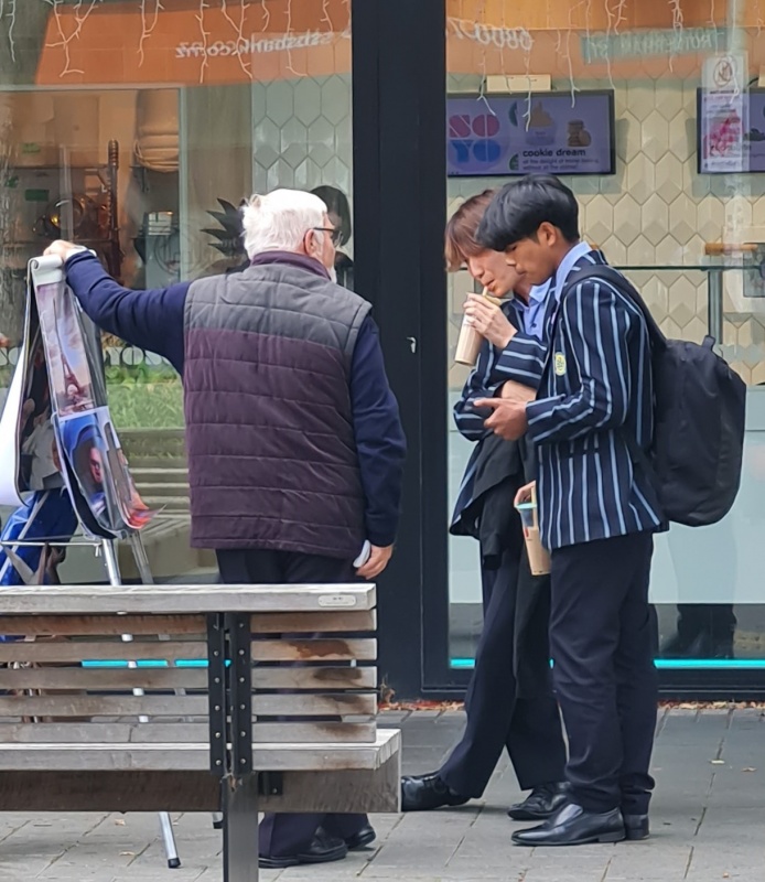 Roger was with me on Tuesday afternoon. I know I “had a wonderful couple of hours on the streets having gospel conversations with a wide range of people. What a joy! I'm constantly amazed at the interesting opportunities God gives us.” – because I copied that from a Facebook post I wrote the day after. But I really can’t remember the details now - except I remember talking to a group of school kids. They were being a bit silly, and yet they heard the gospel anyway. They wanted to take a selfie with me after.