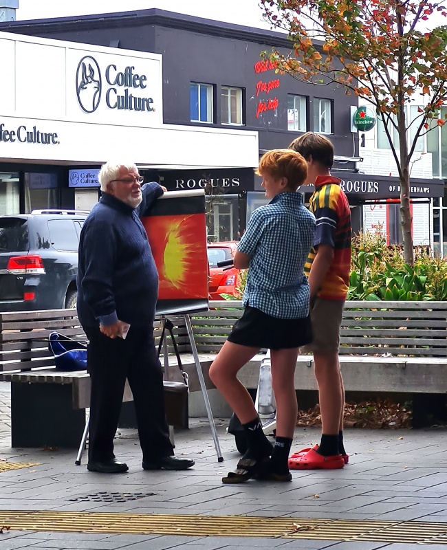 Casting my mind back to Tuesday, the highlight chat was with a group of 5 high school kids - Christchurch Boys High. They already had a gospel tract, I guess from Roger over the street. I saw them coming back, but Roger was already in a chat, and so they came over to me. I smelled a set up, but I love these situations. We got into a conversation, and the ring leader was being silly (no surprise). I rolled with his jesting, but also answered the subtle questions he was asking.