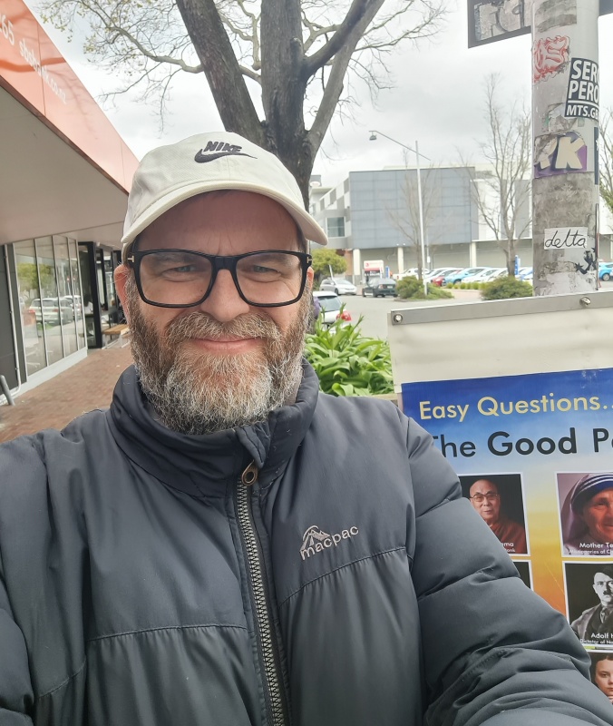 I decided to head over to Cathedral Square. The usual flock of sheep (Christians) and goats (Hecklers) was there. Steve the Atheist was there - but he doesn’t like me, so I went to talk with Nick. Yet, Steve couldn’t help himself from giving me a piece of his mind. Nasty stuff, I said nothing in return. As I was talking to Nick, a kerfuffle occurred, I looked up to see Steve flip backwards in his wheelchair, he landed on his head! It was an accident, but he was livid. He spewed abuse at the perpetrator: “and you can’t come to my house any more”. It was like listening to an upset kid in the playground. So sad to see such bitterness. Thankfully he was okay. I still pray for him. And I know other Christians are too. Apart from the grace of God, that is me.