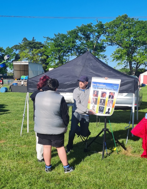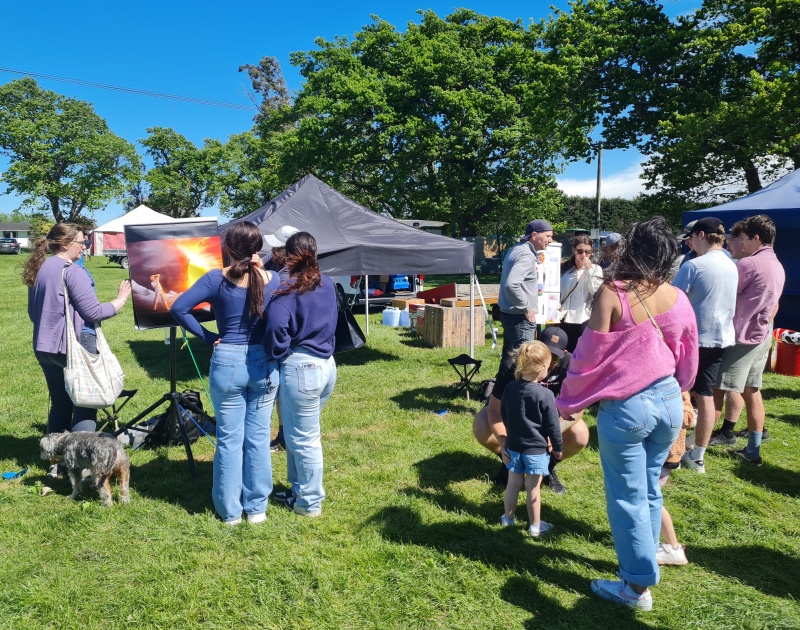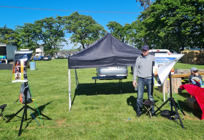 The Ellesmere A&P Show had nice sunny weather, but there was a very very strong wind. The pictures don’t do it justice. Other stalls had to pack up and leave, because it was just too windy to be practical for them. We managed to set up, although we kept the gazebo in the low setting, and we had to tie down the flip chart stands, and hold the flip charts tightly! We decided to proceed with the outreach, and it wasn’t long till Andy was into the first chat. We ended up in outreach for a total of 4 hours, before we finally decided to pack it up (after getting emergency texts on our phones about the winds).