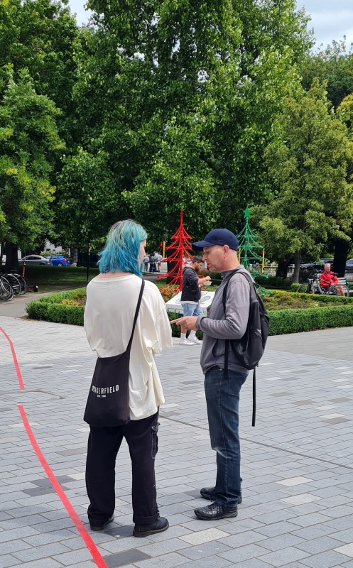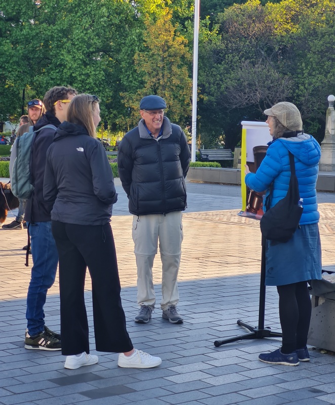 As the morning progressed, we had Lou Johns, Parking & Bylaws Officer for the Porirua City Council come and tell us that we were not allowed to approach people for conversations in their city! I was shocked! It’s been a long while since my false fears of authority had been tested. I decided to play it as a ‘good cop’ - not being intimidated, but at the same time standing for our legal right to talk to people! The conversation ended well, and I’m in email contact with her. If I had the time, I’d like to challenge the Council further on their restrictions.