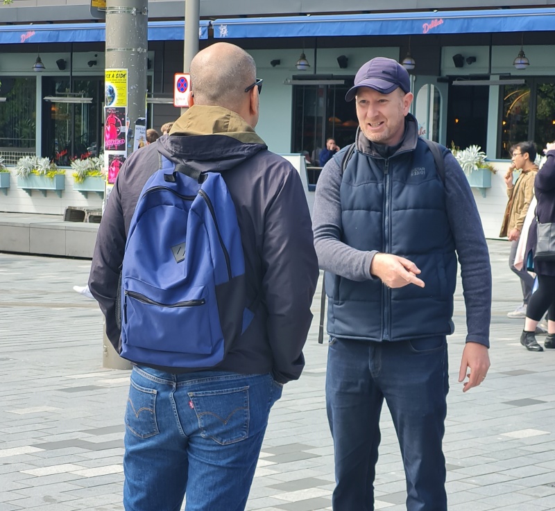 On Wednesday we spent the morning in Porirua City and then the afternoon in Lower Hutt. On Thursday, we spent the whole day in Lower Hutt. And then finally on Friday, we were in Central Wellington: in the morning we were around the Cuba Street Mall, and then in the afternoon we were down on the waterfront and then finished the outreach on Lambton Quay.