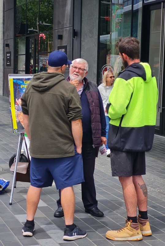 We had a Jewish lady stop to engage. She spent separate time with both Greg and I. Then 2 ladies and a guy approached. 1 was very open, but the other 2 were very closed. The issue was not intellectual, but emotional: why does God allow evil and suffering. Finally, Greg had 2 young teenage boys having a go at him. He ended up passing them to me, and we spared for about 10 minutes - rapid fire. Eventually I paused and said, “hey guys, my name is Glen, and I’m a person, and it really hurts the way you are attacking me”. One of the kids gave up at that point, he stormed off in a huff. But the other kid apologised. We shook hands, and he left with a couple of tracts.