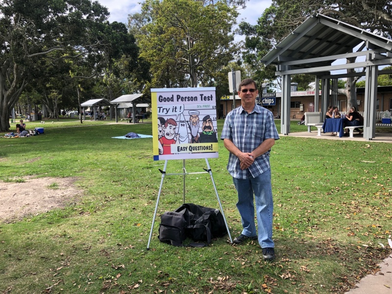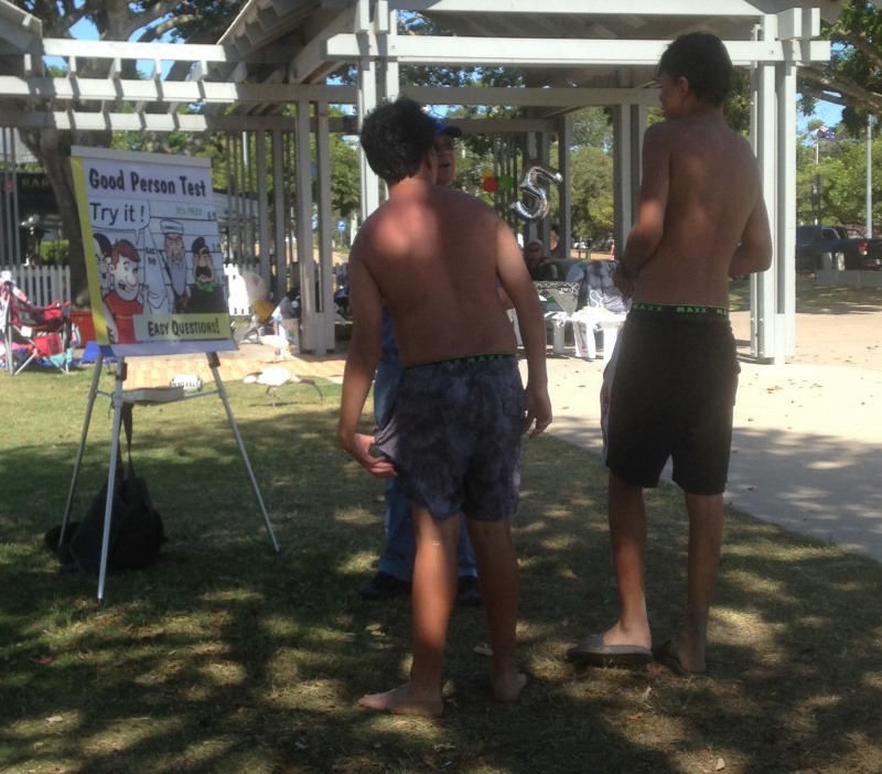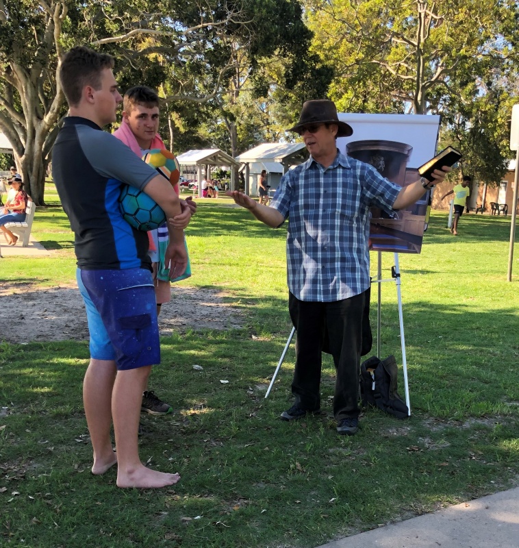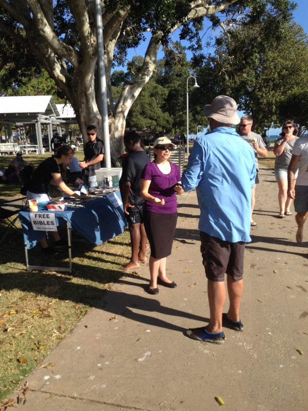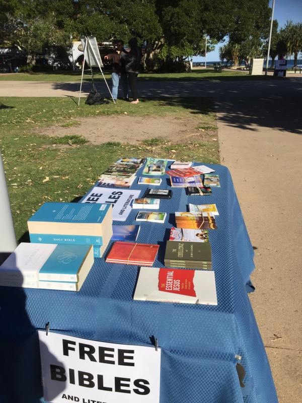 It was a real encouragement to have Mick join us from the Sunshine Coast. Again, a local Christian and his son came along and helped distribute Gospel tracts. Scripture has issued the call to evangelize; we are His witnesses (Acts 1:8) on earth. It is great to see Christians stepping out in obedience and genuine concern for the lost. We must continue to pray that more people from our churches will be convicted of the need to evangelize. Pray for more workers with a desire to share the good news with the lost.