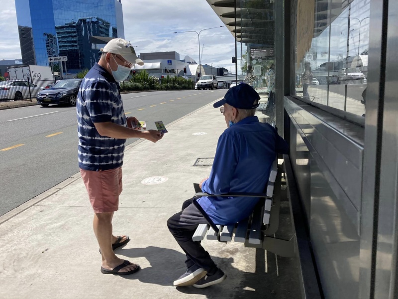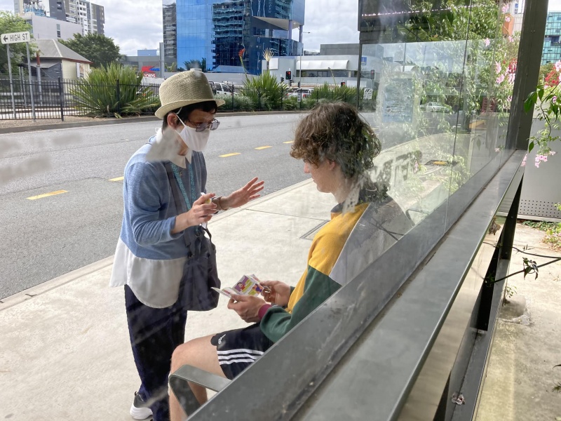 Meets 1:30-3pm every Tuesday afternoon at the Toowong train station on the 2nd floor and splits into two teams, one at the main entrance of Toowong Tower on Sherwood Road, another at the foot of the pedestrian bridge across Benson Street.