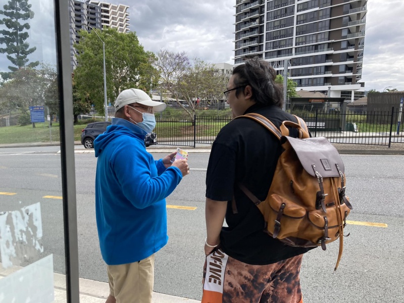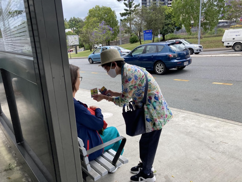 Hurrah, Chi Ming Lin and Di Tseun Zeng couples from Taiwan re-joined the Toowong team today. We praise and thanks God for their faithfulness to come as soon as they arrived in Brisbane after a gap year of 3 ever since the pandemic happened. They chose to hand out tract near the main entrance of the Toowong Village on the Sherwood Rod front. Winnie and I team up to do the Bus stop as usual. Both of us got many divine appointments to share gospel to people of all Nations, including Korean, Brazilian, Indonesian, Singaporean, Local Aussie, and Australian Born Chinese from Cairns. Ouch, just noticed that there was no Chinese in the list and I remembered all the few Chinese I approached all rejected the gospel. But Winnie seemed to have a better result with the Mainlanders. God is always in control.