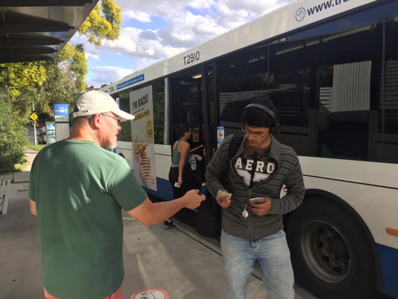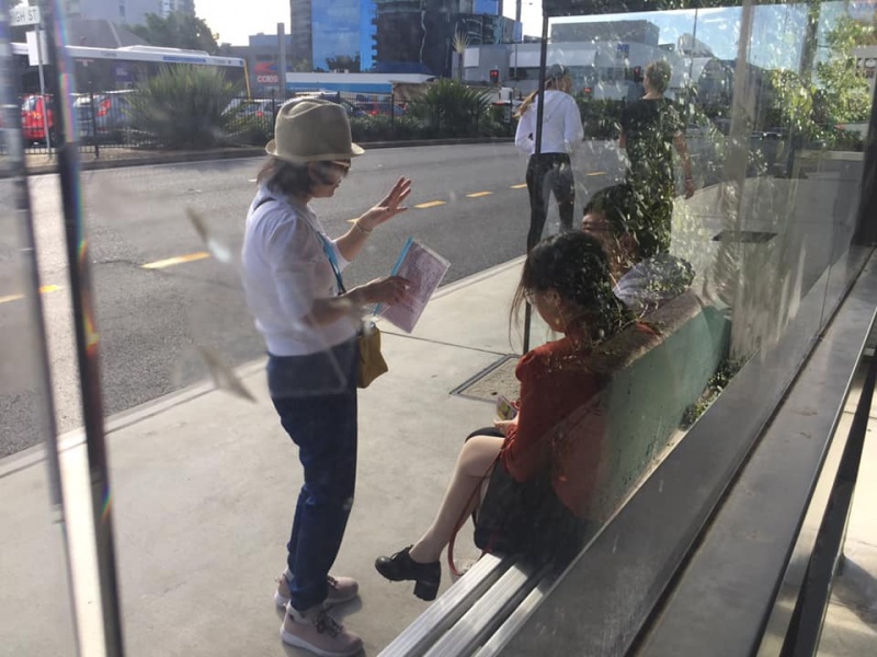 1) An old Aussie lady appeared very welcoming to our greeting. It was a pity that the bus simply arrived too quick that left us no room to get into the sharing of the gospel. It anyway was not a too bad start.