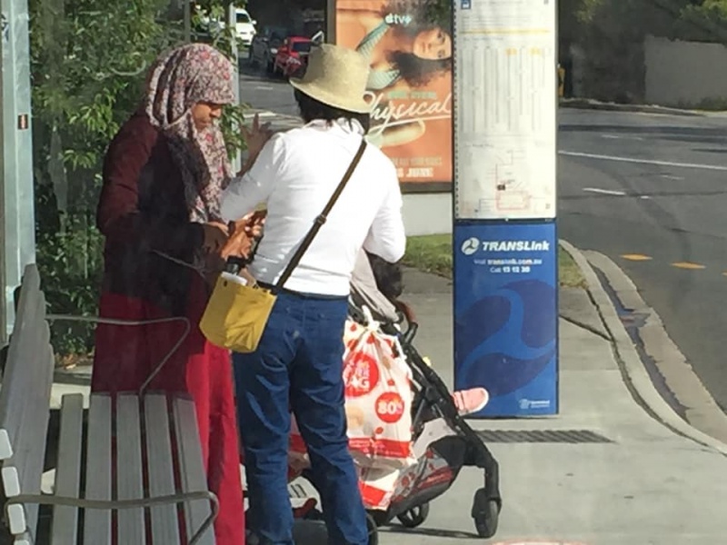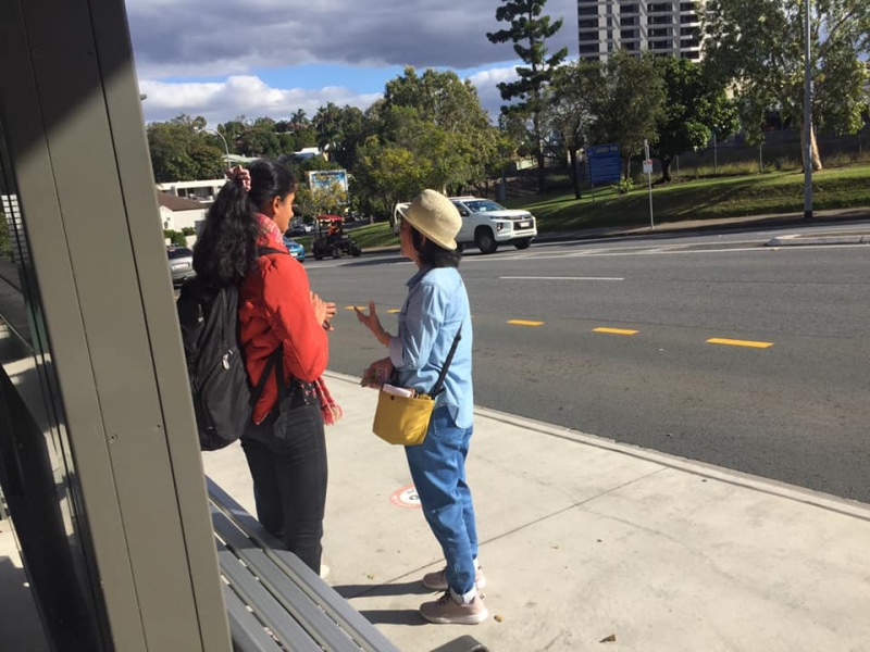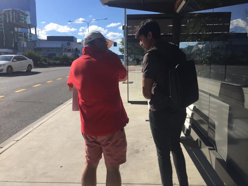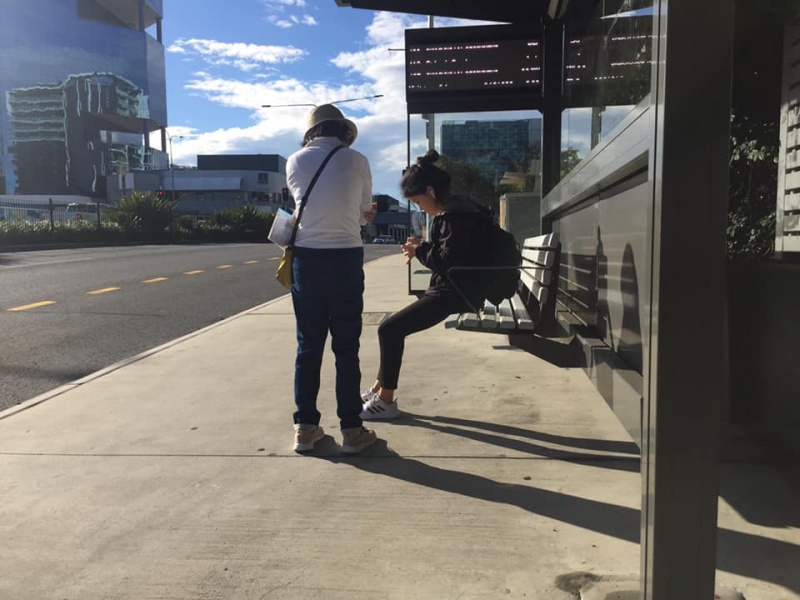 7) Then I approached an Aussie girl and an Indian girl who chose to hide themselves under the shade of the bus stop. But they did not show reluctance to have a chat with me or any expression of being disturbed. The Indian girl even jokingly asked if the tract was free. I quickly got into gospel message but still only had it half done when the bus came.