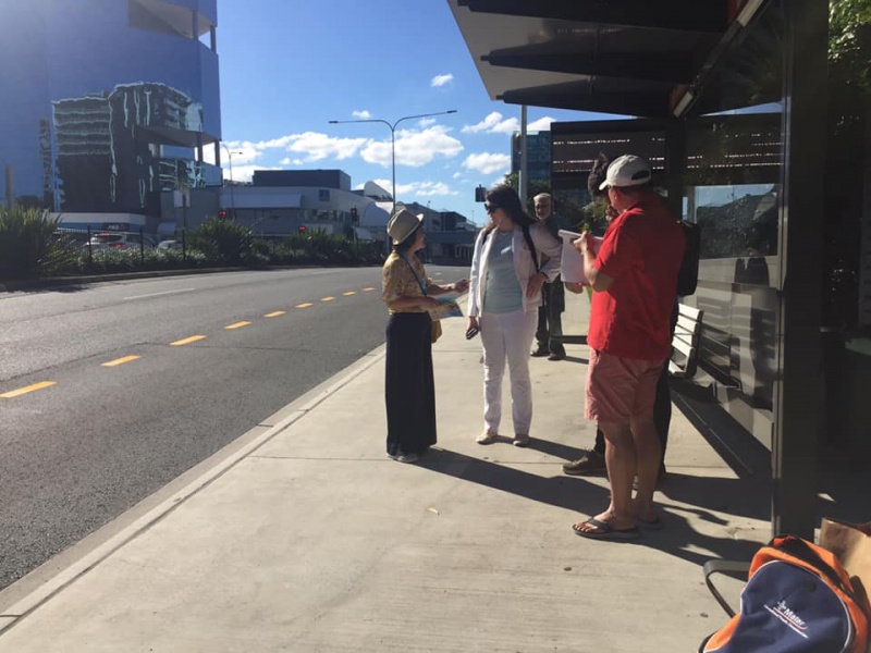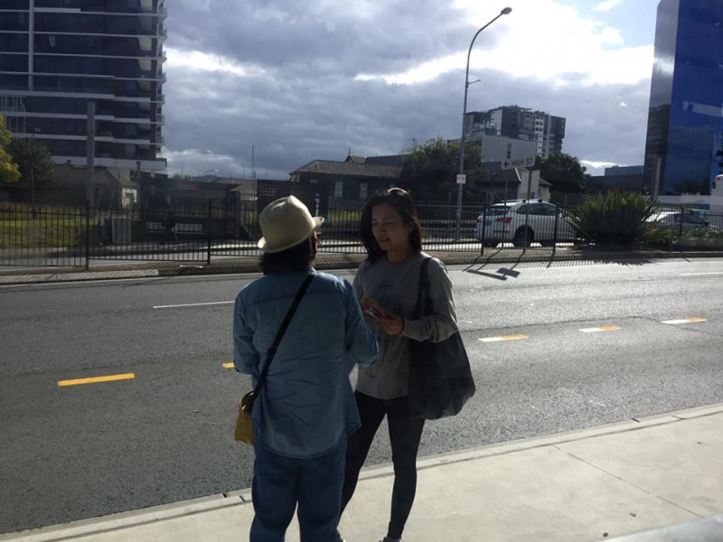Praise and thanks God calling and raising up a new street Gospel team member Hai Yue to join us the three regular team mates, Johnny, Winnie and Hung. Hai Yue is a current 5th Online Kairos student. But God has touched and moved her enough to give it a go joining us today during her rest day of her scheduled job rooster duty as an Intern doctor at the Royal Brisbane Hospital.