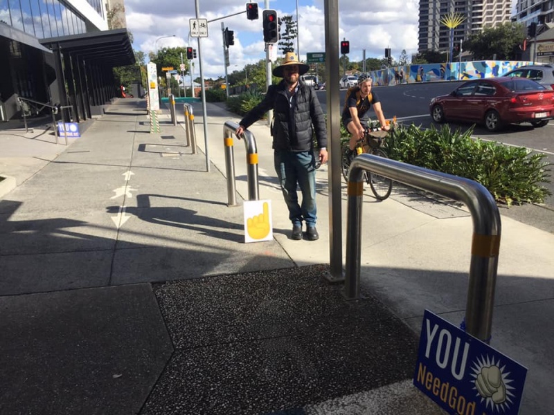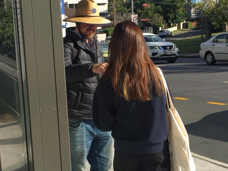 Meets 1:30-3pm every Tuesday afternoon at the Toowong train station on the 2nd floor and splits into two teams, one at the main entrance of Toowong Tower on Sherwood Road, another at the foot of the pedestrian bridge across Benson Street.