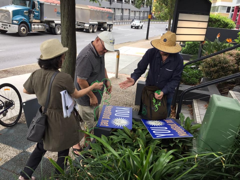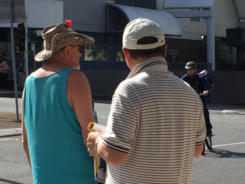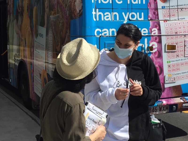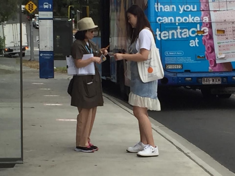 Meets 1:30-3pm every Tuesday afternoon at the Toowong train station on the 2nd floor and splits into two teams, one at the main entrance of Toowong Tower on Sherwood Road, another at the foot of the pedestrian bridge across Benson Street.