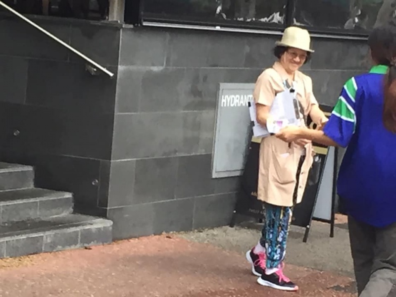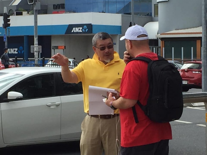 8) After we finished for the day and did the closing prayer. We noticed an old woman from Shen Zhen 深圳 sitting on the ground waiting for her daughter who had gone to the Toowong shopping centre. We took the chance to share the gospel briefly to her and gave her the tract.