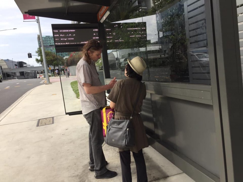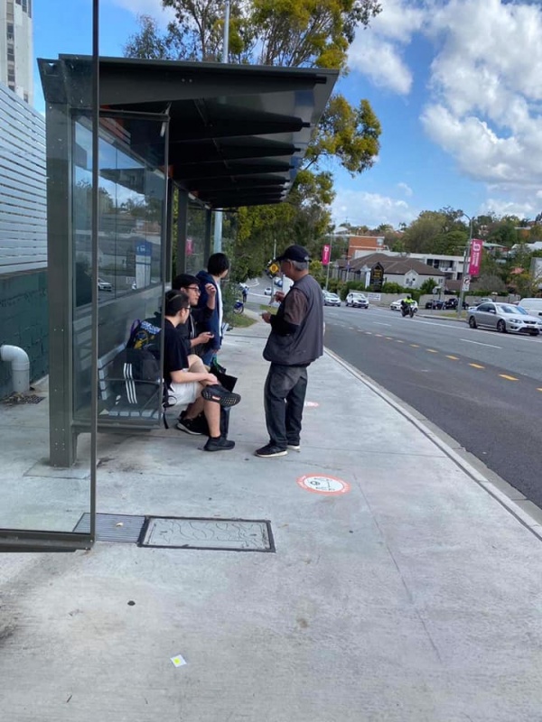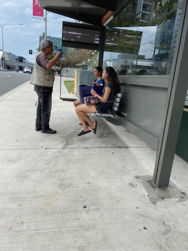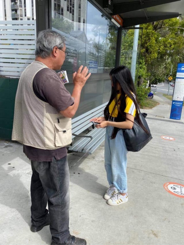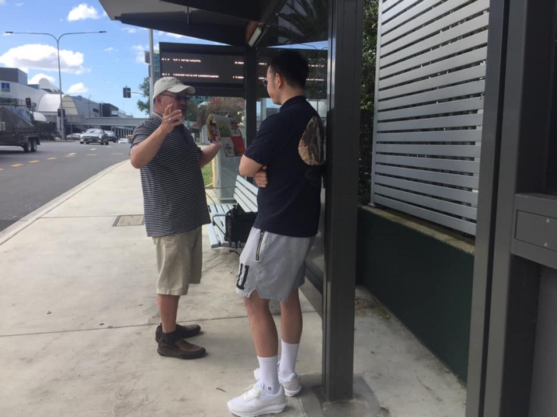 Gary came to joined us while Yan was not available. So we continued to serve at Toowong with a team of Four. The more we serve God in a street evangelism environment with so many uncontrollable factors, the more we experience the sovereign control of God throughout the whole course of our 1.5 hours ministry time. Without God's intervention, the normal response we get is blunt rejection. Many of our approach today faced initial rejection but once God intervened, we miraculously can get a conversation later at our 2nd approach with good result. Both Gary and Johnny now also would occasionally left their outreach outpost to walk with gospel targets to the Bus Station to continue with their conversation until finished or the arrival of the bus which ever happened first.