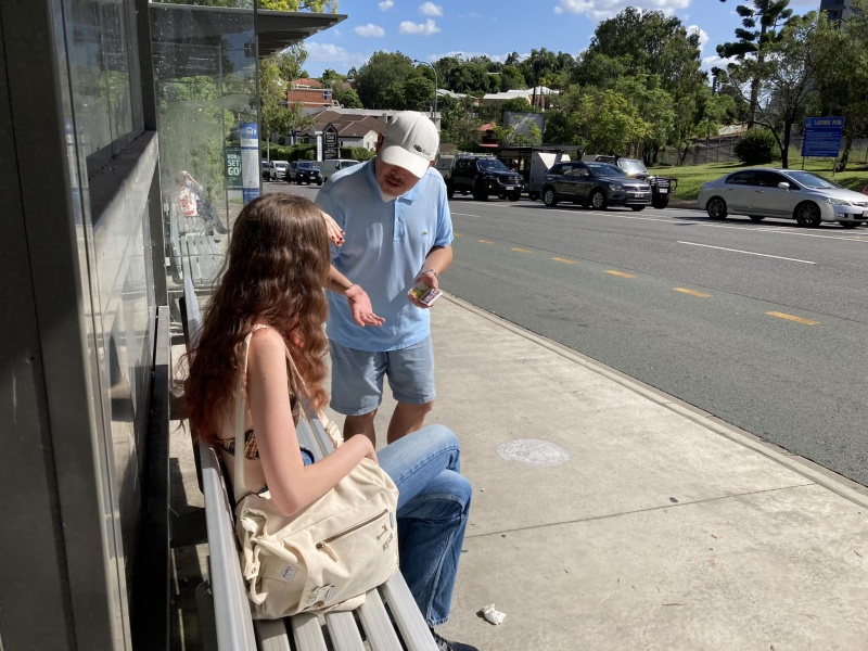 After a couple of rainy days, it turned sunny and scorching hot in the early afternoon at Toowong. The bus stop was turned into a mini furnace by the radiating heat from the concrete platform. People tended to become impatient and reluctant to have a long chat. It was under this tough condition that we still endeavoured to do our best to work with God sharing Gospel to whoever the Spirit led us to approach. Because of the heat and quick arrival of bus, our chat had also been cut into scattered pieces. The upside was that I could have more smaller chats up to 10 as recap below: -