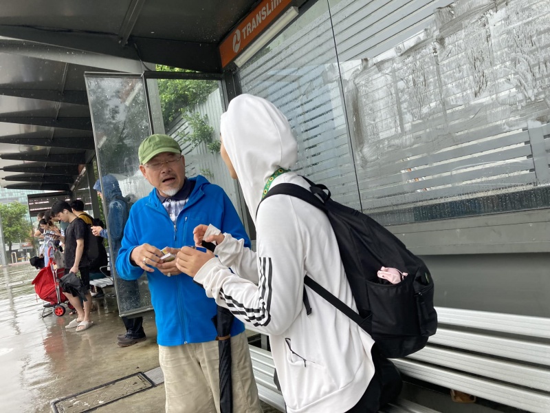 There was incessant soaking rain whole day, but it did not deter our burden and commitment to preach the gospel to the lost souls. Rather the rain kept every one crowded under the bus stop booth. The number of chats were more than usual though many were brief and short. Amongst all these divine appointments, there were a couple stand out ones with persons from Mainland China but their hearts were extraordinarily softened and open for the Gospel. Recap below is the Battle Log of Hung: