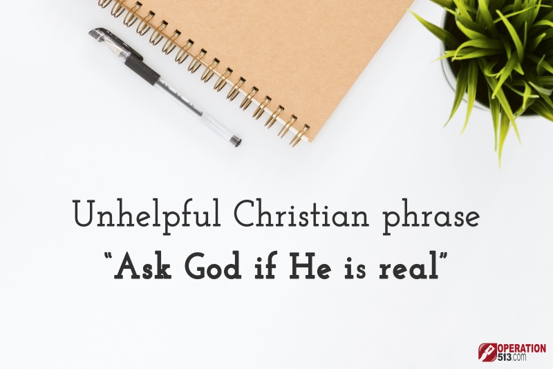 • Puts God to the test: The Bible is clear in never putting God to the test (Matthew 4:7) and a phrase like that encourages a person to do exactly that. God has never said for people to ask Him if He is real.