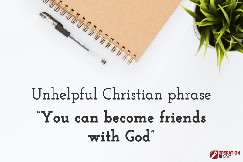 The fifth phrase not to use is: "You can become friends with God".