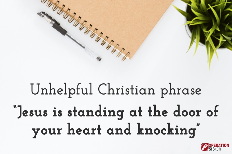The third phrase not to use is: "Jesus is standing at the door of your heart and knocking".